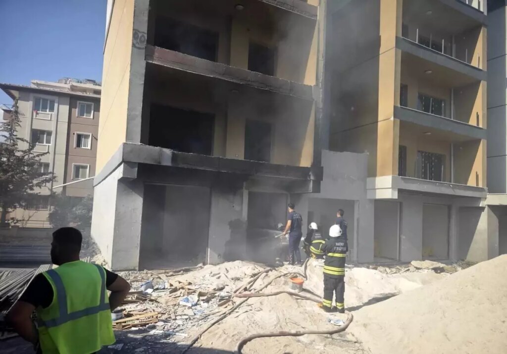Hatay’da inşaat halindeki binada çıkan yangın, itfaiye tarafından söndürüldü.