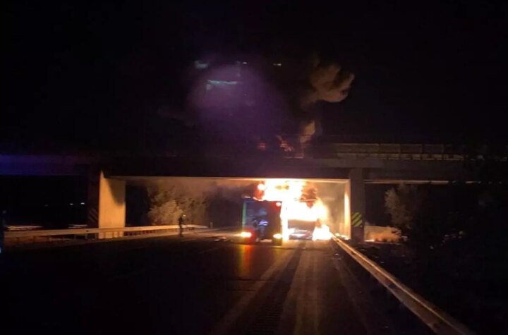 Adana'nın Pozantı-Tarsus otoyolunda seyir halindeki bir lastik yüklü tır, bilinmeyen bir sebepten ötürü alev...