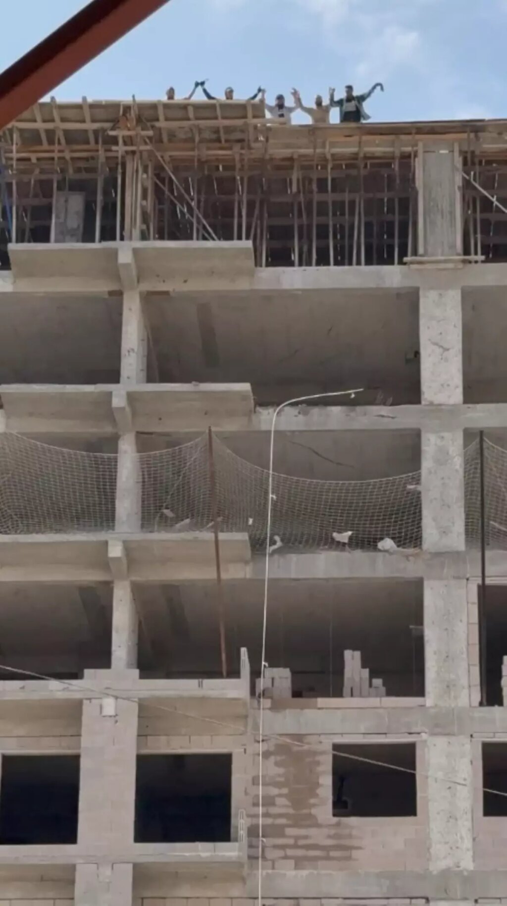Adana'da inşaatın 10. katında güvenlik tedbirleri alınmadan çalışan personeller, yoldaki bir arabanın müzik sisteminden çalan müzikle halay çekti. O anlar görüntülendi.